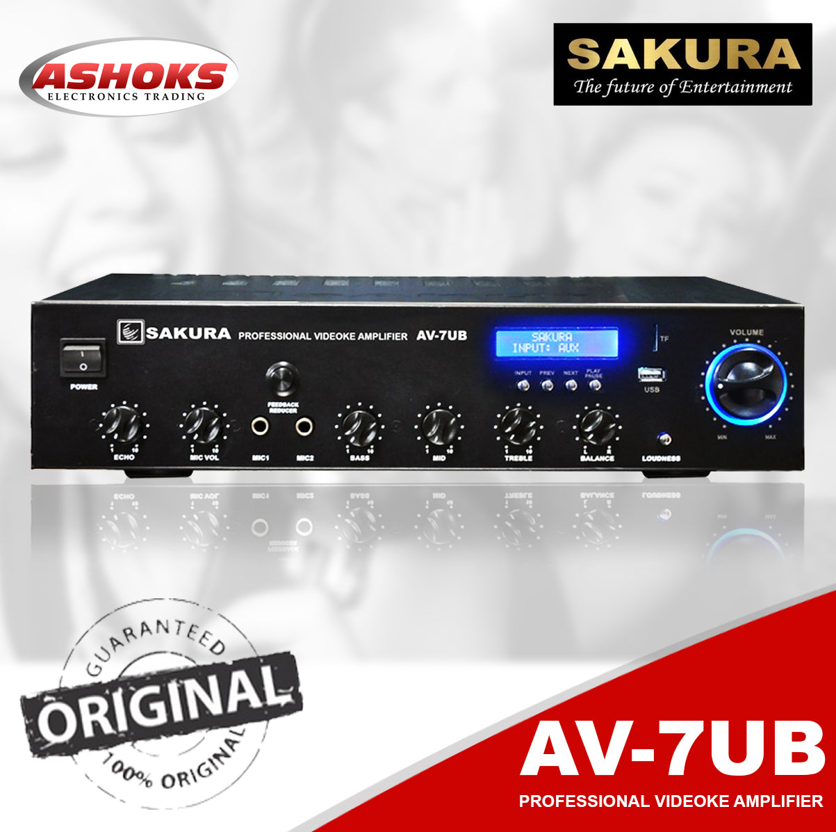 Sakura AV 7UB Amplifier / 850w X 2 / 2 Channel / 2 Mic Input / Bluetooth, USB, SD Port